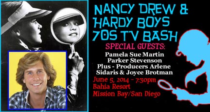 Thurs. June 5 - Nancy Drew Convention/Sleuth Con II Begins. Day: Presentations from 9am to 4:30pm with merchandise and prize raffle. Evening: 7:30pm Nancy Drew TV Show Mystery Dinner Party with Special Guest, actress Pamela Sue Martin - TV's Nancy Drew plus actor Parker Stevenson - TV's Frank Hardy! Also attending: 70s TV show producers Arlene Sidaris & Joyce Brotman. Special TV Show Memorabilia Raffle. Autograph Session with Ms. Martin.