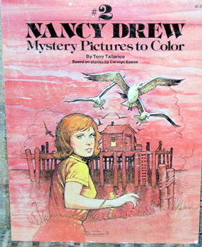 Finding either of these coloring books clean and uncolored may be a difficult task! They can be priced anywhere from $5.00 to $20.00 or more, depending on the condition. A third coloring book, simply titled Nancy Drew Clues to Color, was also published, with a cover by Rudy Nappi and interior illustrations to color by Tony Tallarico.