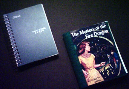 Make a notebook for sleuthing--write down some clues! Here's how: 1. Buy a small spiral notebook about 5 ˝” by 4 inches. 2. Lay the notebook open flat. 3. Cut a piece of felt to fit the notebook. The spiral rings will take up extra room, so be sure to test the size with the notebook open and shut. My piece of felt was about 5 ˝” by 9 ˝”, but note that the size of the felt will vary with the size of the spiral ring. 4. Using an old child’s paintbrush, I spread a thin, even layer of tacky glue on one outside cover of the notebook. Carefully place the felt covering on this side. Shut the notebook with the covered side down and spread the glue on the other outside cover. Pull the felt around and gently press into place, bringing the end of the felt to the end of the cover. Be careful not to glue the pages of the notebook together. 5. Decorate your notebook with a sleuthing motif! Note: Leather, cloth and paper can also be used to decorate your notebook.